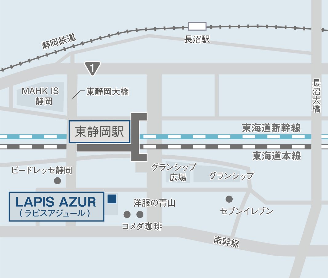 (静岡駅より車で8分、東静岡駅徒歩3分)