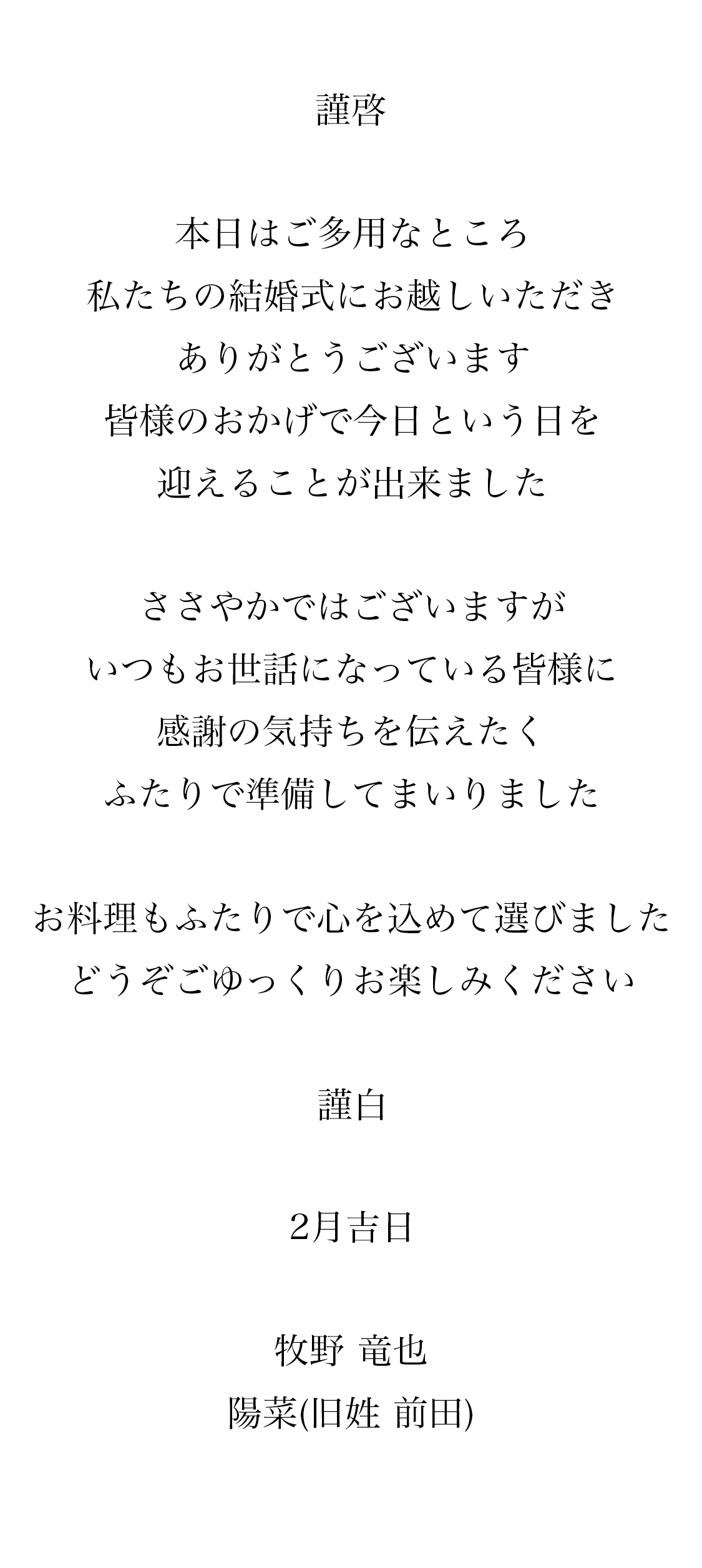 挙式 15:30 / 披露宴 16:15